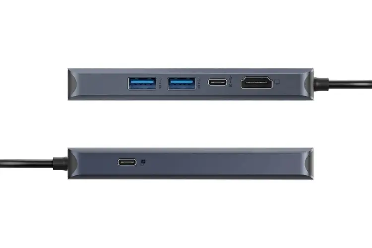 • Hub chuyển đổi có thiết kế tối giản, gam màu xanh hài hòa với mọi không gian làm việc. Kích thước khá nhỏ gọn, bạn có thể đem theo muôn nơi từ văn phòng công ty, nhà ở, thư viện đến các quán cà phê học tập.